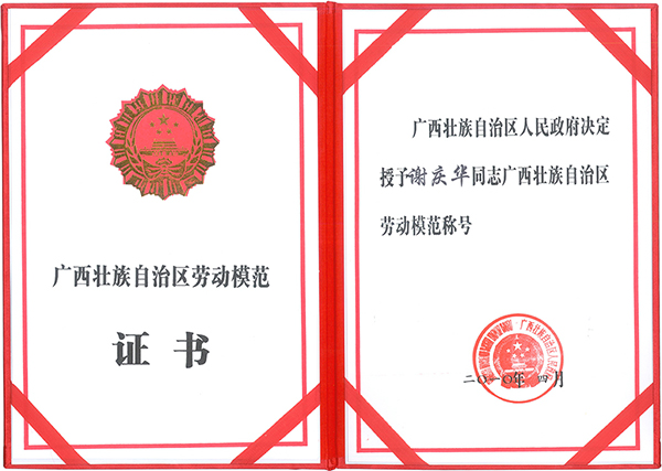 謝慶華總經(jīng)理榮獲“廣西壯族自治區(qū)勞動模范”稱號