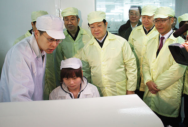 王兆國副委員長(zhǎng)仔細(xì)聽取了園區(qū)建設(shè)情況匯報(bào),參觀了園區(qū)企業(yè)展品及生產(chǎn)車間,詳細(xì)了解企業(yè)的成本、技術(shù)、市場(chǎng)銷售、工人待遇、投資環(huán)境等情況,并向工作在企業(yè)一線的工人致以新春的慰問和祝福。