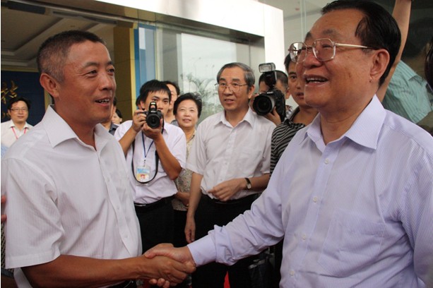 2012年9月6日下午,中共中央政治局委員、全國政協(xié)副主席王剛在廣西壯族自治區(qū)黨委書記郭聲琨,政府主席馬飚的陪同下蒞臨中國電子北海產(chǎn)業(yè)園視察指導(dǎo),中電科技公司董事長謝慶華在園區(qū)展廳迎接了王剛副主席一行。