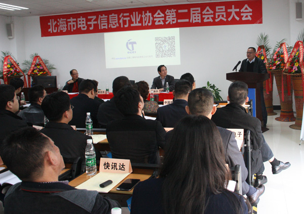 2014年12月29日,北海市電子信息行業(yè)協(xié)會第二屆會員大會暨二屆一次理事會、監(jiān)事會在中國電子北海產(chǎn)業(yè)園隆重召開。北海工信委黃忠東主任出席會議并作重要講話。?