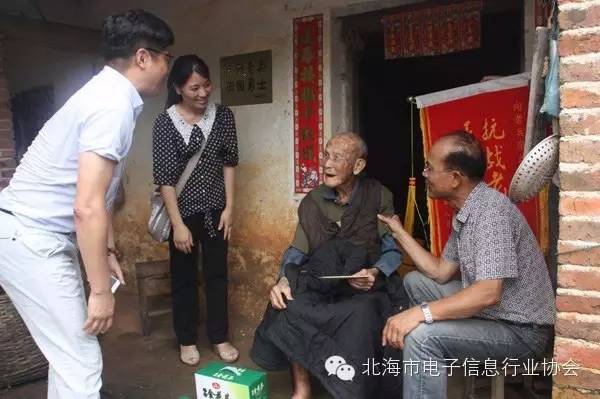 2015年8月15日,在這抗日戰(zhàn)爭勝利70周年之際,北海市電子信息行業(yè)協(xié)會(huì)與民革北海市委會(huì)聯(lián)合探望了三位抗戰(zhàn)老兵,送上慰問金與慰問品。大家傾聽老兵講述那段槍林彈雨的抗戰(zhàn)經(jīng)歷,分享來之不易的和平發(fā)展成果,打著拍子為老兵獻(xiàn)唱革命歌曲。