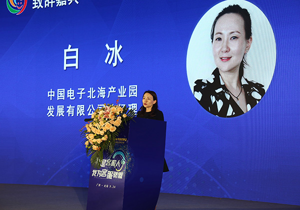 中國電子北海產(chǎn)業(yè)園公司總經(jīng)理白冰在頒獎晚會上致辭