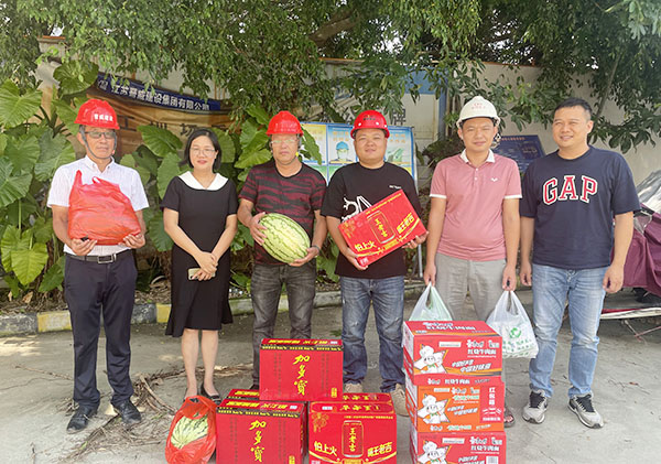 2023年7月19日下午,園區(qū)項目中電春海湖、中電海灣國際建設現(xiàn)場烈日炎炎,受集團公司領導的委托,中國電子北海產(chǎn)業(yè)園公司副總經(jīng)理劉曉娟到項目建設現(xiàn)場,為高溫天氣下堅守在一線的工作者送去了清涼和慰問,囑咐大家在高溫天氣下工作要做好防暑降溫措施,合理安排工作時間。